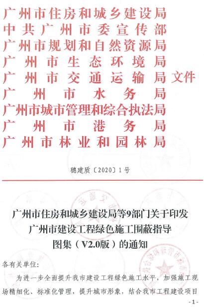 廣州市住房和城鄉(xiāng)建設局等9部門關于印發(fā)廣州市建設工程綠色施工圍蔽指導圖集(V2.0版)的通知